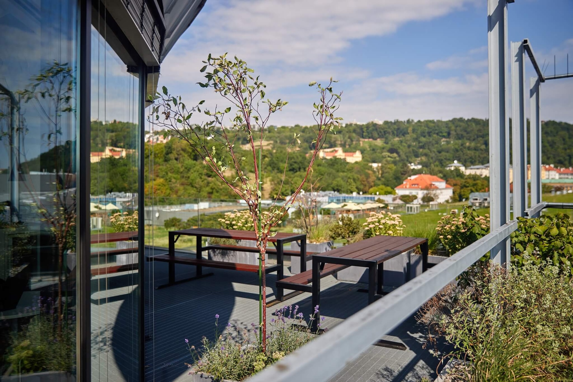 Kromě certifikace BREEAM jsme jako první v České republice získali například platinové hodnocení WiredScore za digitální konektivitu a na naší střeše kromě dechberoucího výhledu najdete také včelí úly, kterými se snažíme podporovat biodiverzitu přímo ve městě. Do udržitelných projektů i komunity neustále investujeme.