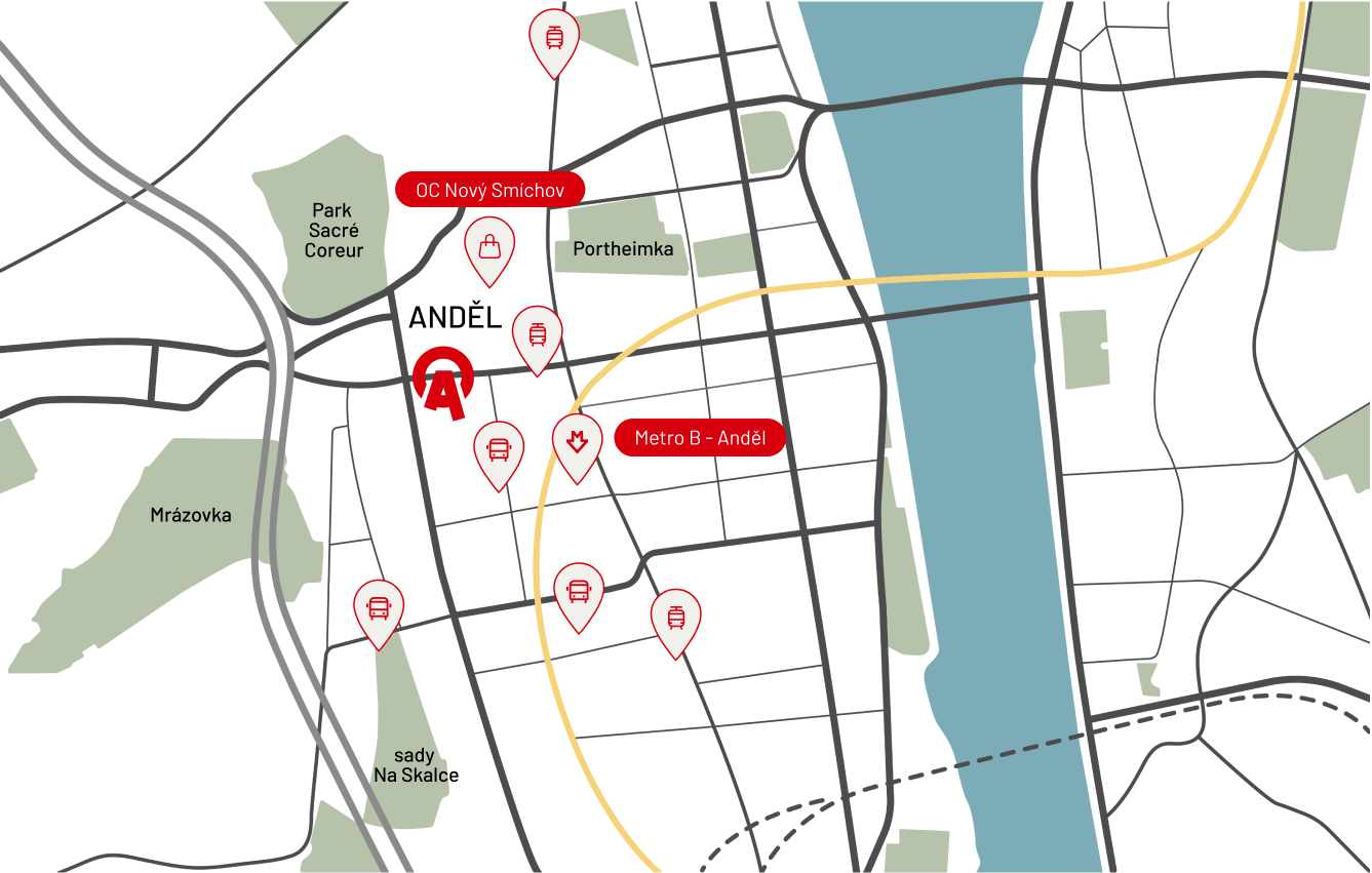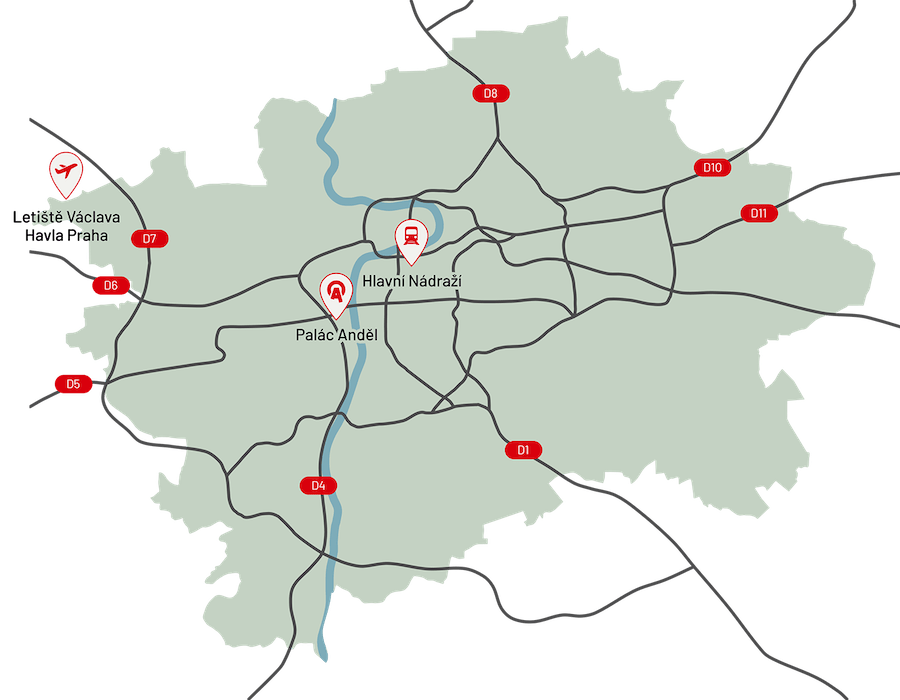 Anděl se nachází kousek od centra Prahy a je tak blízko nejen historickému centru, ale i hlavním výpadovkám z města. Ať už cestujete veřejnou dopravou nebo autem, cesta do Paláce Anděl je vždy bez potíží díky skvělé infrastruktuře.